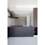 仕切りをできるだけ取り除いた豪華なキッチンになりました。 リビングの雰囲気と合わせ、落ち着いたシンプルなキッチン。