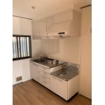 1人または二人くらいで生活することができる幅1800サイズへと大きくさせていただきました。壁にはキッチンパネルを施工し、汚れにくい環境にできました。