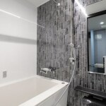 596.お掃除ラクラク!石目柄の鏡面パネルがオシャレな浴室