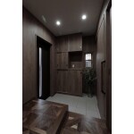 フローリングは既存に近いものをリクエストされましたので、いくつかサンプルをご用意し、その中から選んでいただきました。 スペースに余裕があったので、収納はたっぷりめ。 お客様の使い勝手に合わせた収納家具は造作です。 壁面はすべて揃えたいとのことでしたので、床フローリングの色に合わせて色や木目の雰囲気を選びました。 落ち着いたトーンで、重厚感のある玄関に。 自然光が入るようにしたいとのご要望がありましたので、ドアは自然光が入るもの(スリット入り)をセレクト。 また、一カ所窓をつくり、自然光を取り入れつつ換気もできるようにしました。