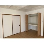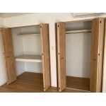 段ボールや衣装ケース、衣類の収納スペース確保の為、クローゼットを設けました。 右側のクローゼットがBefore写真の床の間、左側のクローゼットはもともと押入れでした。右側のクローゼットにはパイプハンガーを設けて、お洋服がかけやすいようにしております。