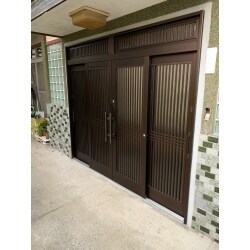 重厚感のある樹脂4枚引戸になりました。複層のガラスになったので、冬でも暖かです。