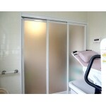 窓の上部に電気式暖房機を設置しました。 タイル張りの大きな浴室なので防寒用になります。