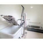 電動式のストレッチャーです。横になった状態で入浴が出来ます。介助者の助けになっています。