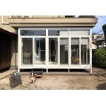 屋根は金属屋根(スーパーガルテクト)でのカバー工法をご提案。 屋根下地がコンクリートのため、ビスまたは釘のどちらが適しているか、屋根の下で見えないコンクリートの状態を確かめるため、事前に試し打ちを行い判断しました。 テラス囲いは、広さがあったため特注で対応いたしました。 ペットドアの取付は、使い勝手と見た目の良さにこだわり、提案いたしました。