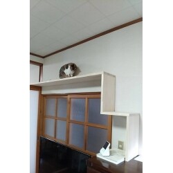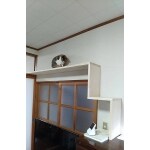 鴨居から食器棚へ足場を造り、家具を利用したキャットウォークが完成!