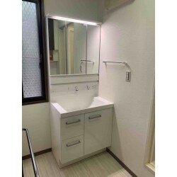 一面鏡の洗面化粧台を三面鏡にしたい。 収納が開き扉で使いづらい。