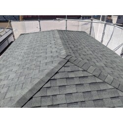 棟板金を撤去し、防水シートを敷き直してからアスファルトシングルを重ね葺きしました。