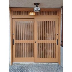 現在すりガラスがメインになっていて玄関周辺が透けて見えてしまいますので格子が多く付いたものにしましょう。