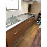 L社のシエラI型を設置いたしました。 キャビネットが引出しタイプになったことで、収納力がアップ。調理器具の取り出しもスムーズに行えます。