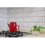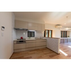 キッチンは奥様のご要望もあり、レイアウトをL型からI型へ、窓を小さく変更しました。キッチン周りにはシンプルながらも大きな面を取った立体感のあるタイルをベージュの目地で貼り、空間に調和を持たせました。