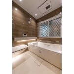 浴室はホテルライクな高級感を演出できるTOTOのシステムバス、シンラ。建物全体の調和を考えて、木の温もりを感じるノワウッドの浴室パネルをお選びになりました。