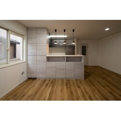 対面キッチンから壁側キッチンへ、間仕切りもなくしてスッキリ