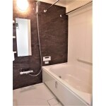 現在のシステムバスは、高断熱浴槽、レバー水栓も標準装備です。 壁の一面をアクセント色にし、スタイリッシュなバス空間となりました。