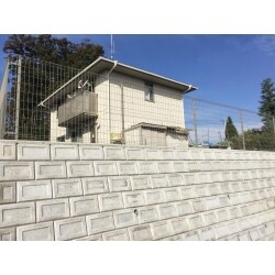 高低差が1m以上もあり、ブロックでの土留めでは強度上問題があるため間知ブロックによる土留めをご提案。 さらに盛土を行い、高低差をなくしました。 またワンちゃんが遊べるスペースにしたいとの事でしたので、ブロックにフェンスを設けるようご提案。 大型犬でしたのでお隣様の敷地に入ってしまわないよう、高さがあるフェンスをチョイスしました。