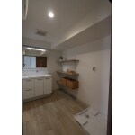 脱衣室が狭いので広くしたい。着替えが置けるような収納も欲しい。