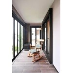 ウッドデッキ部分をサンルームに。 夏は涼しく、冬は暖かい、タイル施工にしたので、水洗いも出来て、快適。 どんな天候でもお庭の緑を眺めながら、リビングの延長として寛ぎ、読書や趣味を楽しんだり、ペットと遊べる空間に。 お洗濯物も日差しを取り入れながら干すことが出来るようになり、大変お喜びになられました!