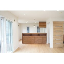 キッチンは決まっているという事なので、 サイズ、カラー等ベース色は合せ、圧迫感のない空間を確保提案させて頂きました。