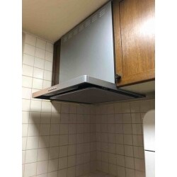 吊戸棚とレンジフードの位置が揃うように工事を行いました。