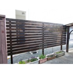 お客様のご希望は、高さが2m程度で、下から風が抜けるようにしたいということですが、柱はアルミで建て、フェンスの代わりに横板を無垢の木材で仕上げたらいかがでしょうか?
