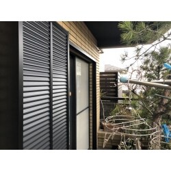 既存の雨戸の色味と似た商品を探してご提案させていただきました。また、網戸は張替えをご提案させていただきました。