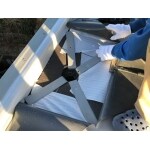 既存の防水シート上に断熱用の平板が敷き詰められていました。これを撤去処分するのは費用も掛かりますので、通気型塩ビシートでの全面防水をご提案しました。