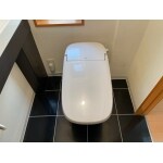 タンクレスでトイレのつなぎ目がないINAXのサティスGシリーズは多くのお客様に好評です。 トイレの後ろ側の掃除のしにくさから解放され、手が届きやすくすっきりとした見た目に変わりました。 オシャレなトイレとの雰囲気ともバッチリ合っていて、とても素敵な個室空間になりました。