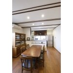 フラットなワンフロアへ!竃さんの梁は見せ、漆喰壁を壁紙仕上!