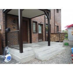 いくつか提案させていただいたが、価格的にも将来のメンテナンス的にも有利なコンクリートのポーチとなり、将来の不安が無くなった。 ちなみに、柱は鉄骨製、手すりはアルミ製です。