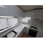 30年前に建てられたお宅で、キッチンの天板が木で作られていました。 木の天板も勿論味がありいいキッチンでしたが、お客様はその木をとても嫌に思っていたようで、 天板や吊戸棚の扉などにシートを貼っていました。 今回はそのシートを貼り変えて、きれいに一新することにしました。 ダイノックシートという壁紙(クロス)などとはまた違う素材で、施工も難しいため、専門の業者さんにやっていただきました。 専門の業者さんと現地調査を行い、お勧めのシートを提案したりしながら相談し、最終的にお客様の最初に選ばれたシートで施工いたしました。