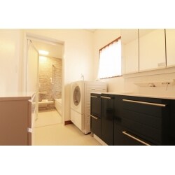 物干しのしやすい動線でゆったりとした洗面脱衣室