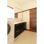 木部の腐食の他、白蟻の被害跡も見受けられましたので 防蟻処理と腐食部の取り換えを行いました。 使用しないスロップシンクは取り外し、空いたスペースには引き出しタイプで収納のしやすい化粧台のサイド収納設置しました。 入浴時のタオルや着替えの服などの一時置きスペースとしても使っていただけます。