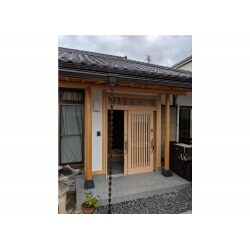 室内側の廊下をリフォームして玄関を広くする工事と、既存の玄関を解体し増築する工事の2つの方法をご提案しました。和風の引違い玄関ドアで電子錠が設置できるLIXILの花伝シリーズをご提案。