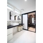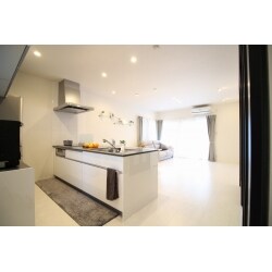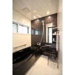 ・キッチンの天板・洗面台のカウンター・浴室のアクセントパネルと浴槽を黒と決め、全体の色バランスを検討。 ・キッチンをフラット対面式とし、LDKは一体感がある空間にプランしました。