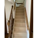 常に手すりを使い昇降できるように 設置いたしました。カーペットもふわふわ感がでるようにフエルトも含めて交換させていただきました。