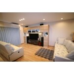 間接照明で、やわらかな光を演出するリビング、ペットドア付!