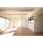 見晴らしの良いマンションを活かし、より明るくて開放感のある間取りへ。 白×グレー×オークを基調としたナチュラルテイストで、柔らかい印象の住まいとなりました。 大きな窓がリビングを明るく照らし、そこから差し込む陽の光が、室内窓を通して居室まで明るくしています。風通しも良く、過ごしやすい空間となりました。 今は小さなお子様も、将来この居室で過ごされる日が来るのが楽しみです。