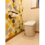 黄色のクロスでパッと明るくなりました。タンクレスにすることで、タンク下のお手入れが軽減され、空間に余裕が生まれました。