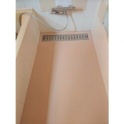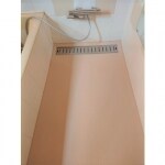 既存のタイルを撤去し、左官工事を行い、 乾いた後に浴室用シートを貼りました。 浴室が明るい雰囲気になり、 タイルの冷たさも解消出来ます。