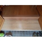 上り框自体はお使頂けるものだったので、リフォーム材で補修させていただきました。 16色の色味の中からお好きな色を決めていただき、玄関の床より少し明るいお色でリフォーム。 新品のような仕上がりになりました。