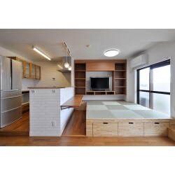 リフォームはリビングダイニングを中心に、キッチン・和室との間にあった壁を取り除き、開放的で一体感のあるLDKに。念願の対面キッチンや畳の小上がり、書斎(ワークスペース)も設け、新しいライフスタイルにあった住まいに。