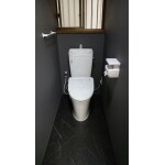 トイレの交換の際には、床・壁交換もオススメしています。 床・壁には長年の汚れと匂いが染みついています。 掃除では落としきれないので、この機会に変えるのがいいでしょう。 イメージを変えたいということで、ダーク系のお色をご提案させていただきました。 オシャレな雰囲気を出せるとともに、汚れが目立ちにくいのもメリットです。