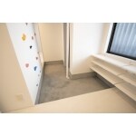廊下を中心に回遊性のある間取りが特徴です。 廊下の用途として使うだけでなく、洗面台をあえて廊下に設けたことで、空間を無駄なく有効活用することができました。 また、玄関横にはシューズインクローゼットを設置し、帰ってきた靴のまま、広々とした土間にコートを掛け、そのまま洗面所を抜けてキッチンへ。 ながら生活が便利な空間となりました。 M様のご自宅には広いウォークスルークローゼットがあります。あえて扉を付けず、見せる収納に。 ご家族のライフスタイルに合った動線になっていて、非常に暮らしやすい間取りを実現しました。 住まい全体はベージュとグレーのシンプルな色使いとし、お客様の好きな黄色をアクセントでお手洗いに。 今は1LDKとシューズインクローゼットの間取りですが、将来はお子様のために、リビングに居室を設けることも考慮した照明計画や壁計画となっています。それまでは広いリビングで家族団欒の時間を。 玄関にはボルダリングを設置し、遊び心も詰まった住まいとなりました。