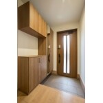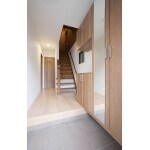 玄関の広さは変えず、玄関扉を引戸から片開ドアを変更し、袖壁を作ることで玄関収納スペースを最大限有効活用し収納スペースを増やしました。 既存の階段と違和感がでないよう色合わせをし、注意を払って仕上げました。