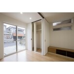 玄関扉を3枚引き戸に。大容量の収納で玄関内もスッキリ。
