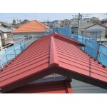 瓦を撤去、風雨に強く瓦に比べて軽量の機能性の高いガリバリウム鋼板の屋根材へ。
