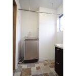 以前よりは狭い面積にはなりましたが、洗面台と洗濯機の配置を工夫し、物干しスペースも確保しました。