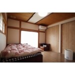 寝室にされたいとのことでしたので、ベッドを置くことを考えて、畳をフローリングに変更しました。内装は和室の雰囲気をそのまま残るようにジュラク壁を和紙柄のクロス貼りにし、天井の板張りはそのまま再利用しました。