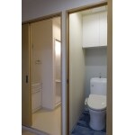三点式ユニットバスとキッチンしかなかった部屋に、独立トイレ、洗面台、洗濯機置き場、玄関収納を新設 新しいキッチンを入れて、充実した設備の部屋にリフォームしました。