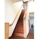 バリアフリーを意識した階段手摺 色のトーンも明るくして認識し易い手摺